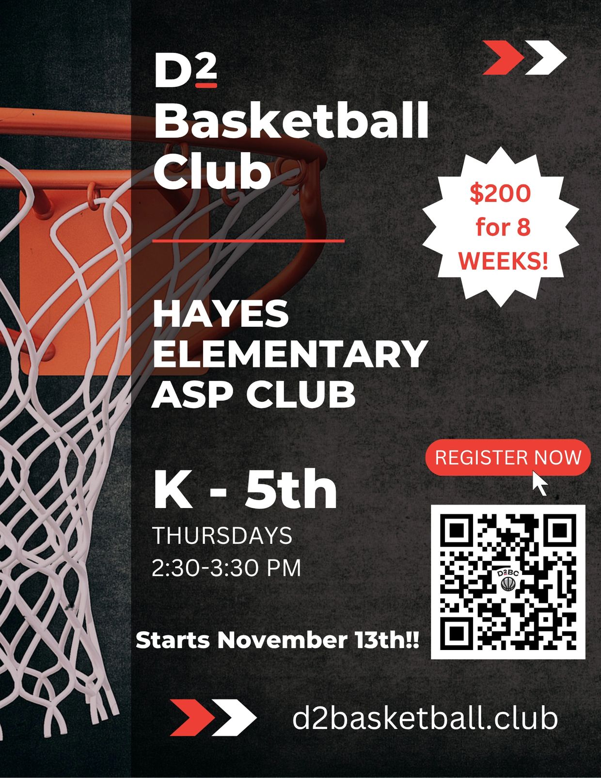 We look forward to introducing the game of basketball to the students at Hayes Elementary. Limited spots available so sign up today!