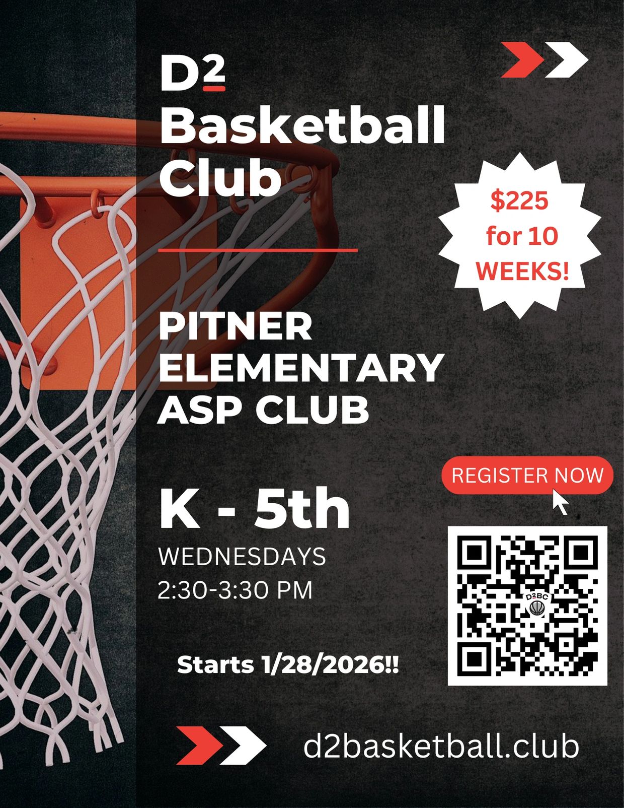 We look forward to introducing the game of basketball to the students at Pitner Elementary. Limited spots available so sign up today!